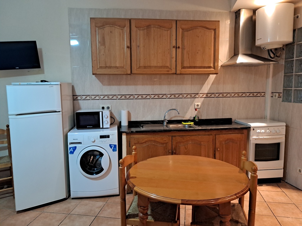 Apartament amb cuina tipus americana saleta-menjador , sofà , un dormitori amb dos llits individuals , tv , nevera , microones , rentadora i amb wifi gratuit. Calefacció centralitzada. Edifici apartaments situat en C/Raval,58.